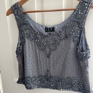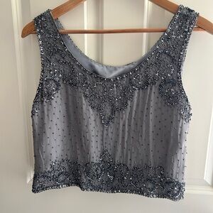 Women's silver 100% silk sequin cropped tank top. Sparkle and shine! Size M