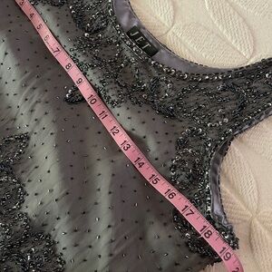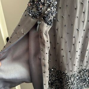 Elevate your style with this women's top, featuring intricate embellishments. The elegant gray color adds a touch of sophistication to any outfit.