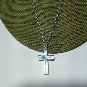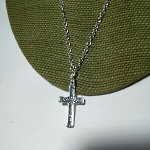 Women`s silver tone cross christian catholic necklace. Religious. 18 inches long. Pendant is 1 inch tall. See pics.