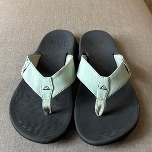 Super comfortable Women’s size 10 Reef Black and Light sea foam colored Sandals 🩴