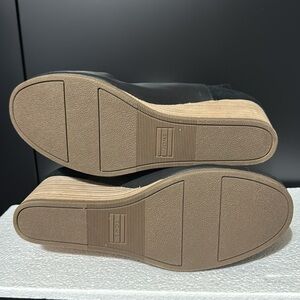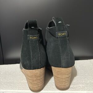 Women’s size 10 | Toms | Black Leather | suede | Wedge Ankle Boots, suede leather mix. Only worn a few times. Not for wide feet which is why I’m reselling them. Purchased by me, brand new. Great condition. Please see pics.