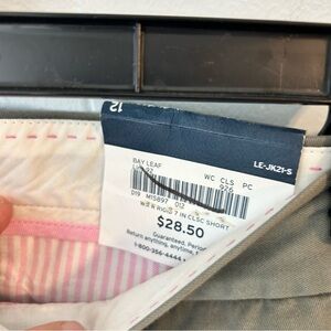 6 inch inseam. 33 to 34 waist size.. 2 front pockets. New with tags size 12.