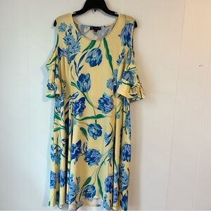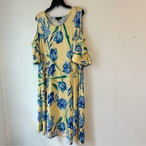 Women’s size 1X N Touch Floral Yellow and Blue Women's Dress. Cold shoulder.