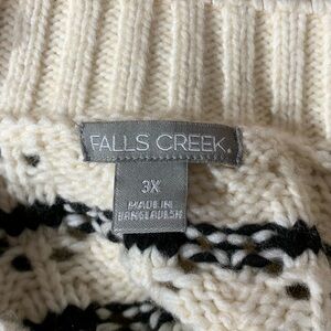 Women’s size 3X Fall’s Creek novelty stitch sweater in off white and black.