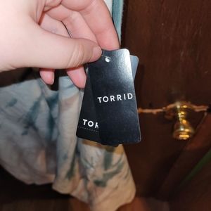 This is a NWT women's size 6X/30 K Grn Tie Dye Foxy Halter top from Torrid. This top is new with tags and super cute! The colors of the Tie dye are more muted and subtle and the halter style of the top is extra cute! This is the perfect halter top for the summer and you van wear it with so many different things! The top is super soft and comfy feeling as well! This would be a great piece to add to your collection!