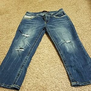 Women's size 7 no boundary Capri. Worn once. No rips tears or stains that aren't fabricated. Distressed look Jean. Smoke and pet-free home.
