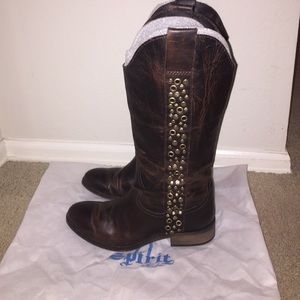 Genuine ~Lucchese Avery~ leather boots. Comfortable, easy to wear boots. Womens size 8.5. In great condition, barely worn!!! Studs up the sides. They come in the bag they were bought in. Perfect for winter!