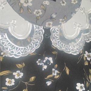Women’s size Large collared blouse by allegra K black floral w peter pan collar
