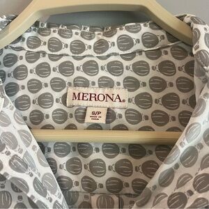 Women’s size Small grey long sleeve air balloon button up shirt blouse Merona