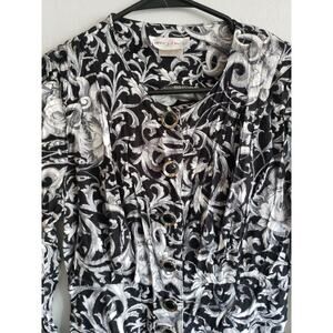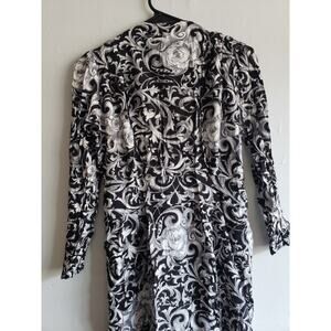 Women's size large VINTAGE black/white paisley dress button front long sleeve