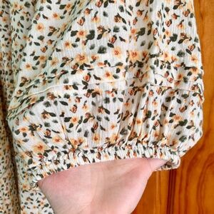 Women’s Wonderly new without tags orange and green floral flowy button up blouse with oversized sleeves