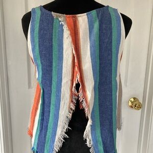 Women’s size medium, multi color, peek a boo back, linen/ rayon summer top