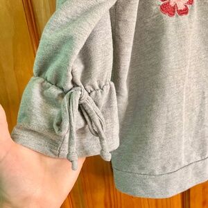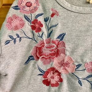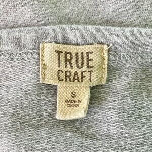 Women’s True Craft oversized look cropped warm gray top with embroidery and elbow sleeves