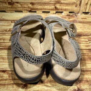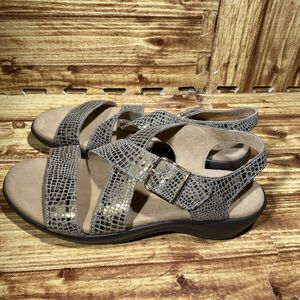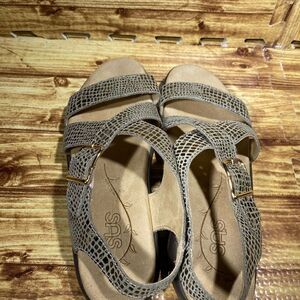 Womens size 7N SAS gold snake print leather buckle heel strap sandals