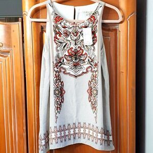 Women's sleevless blouse. By Max Studio. NWT, size small. Geometric desi…