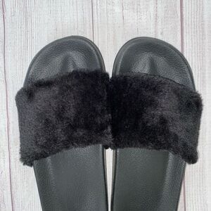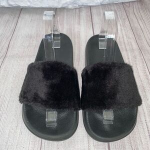 Women’s slip on comfort slides w/faux fur top black sz 8