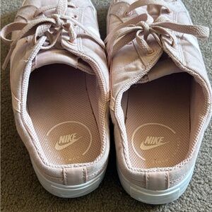 Used conditions. Still has some life left. These are cute Nike slip-ons. Only used a few times. Color is a light pink, salmon color.