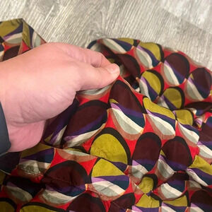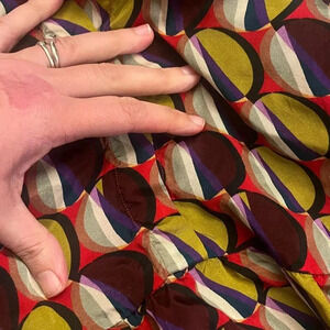 Beautiful dress with ruffled bottom. It’s a light fabric, so a slip could be worn underneath. Has two pockets. The buttons go all the way down to the waist line, then the buttons end. Awesome geometric pattern. Very good, if not perfect, condition. I ship out in 1-2 days! Open to reasonable offers.