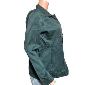 Women's spruce button up textured stripe denim jacket M