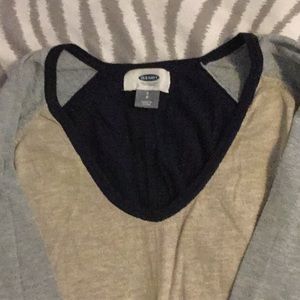 Women’s color block 3/4 sleeve v neck sweater. Grey tan & navy. Worn once excellent condition