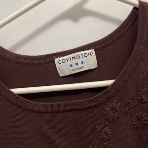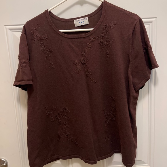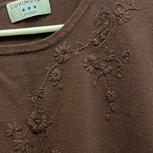 Ladies short sleeve sweater Flower design through out the front and on sleeves No size tag/assume it’s 1X