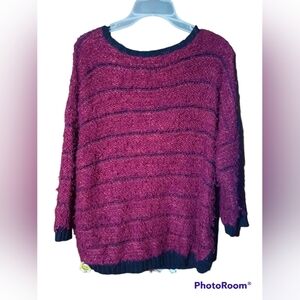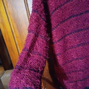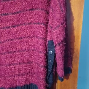 Dark maroon women's sweater by fever XL with black trim and 3 black buttons on the sides. sleeves full length. pit to pit 21" shoulder to bottom 27"