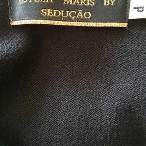 ESTELA MARIS by Seducao women's sweater with sequins and bead embellishments. High end thick knit on bodice with sleeves made from cotton material and cuffs from chunky sweater. Sized as a petite but fits small/medium.
