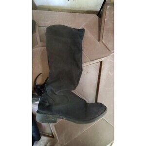 Women's sz 9.5 DIBA Black Scrunch Mid Calf zip-up boots heels Faux suede