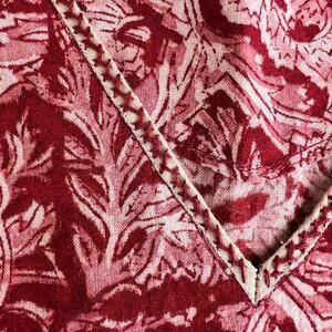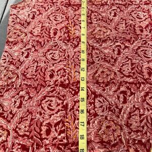 Shades of rust/burgundy with areas of hand stitching in gold thread and a few sequins scattered throughout. Hand stitches by V - neck and arm holes.