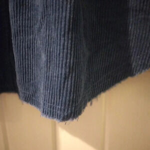 NWT size X-small will definitely fit a small (armpit to armpit is 25" and centerback length is 28 1/2". Teal (my pictures made it more blue). Corduroy with snaps and unfinished fringe bottom. Brand is 143 story.