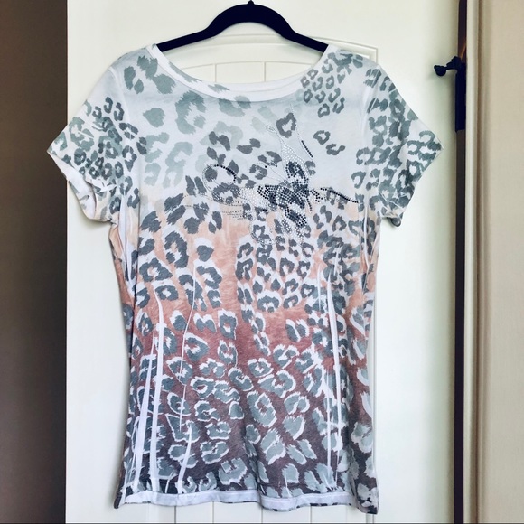 Women’s Tee with rhinestone butterfly detail across front