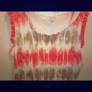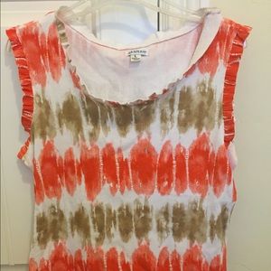 Women's white tank top ether orange and tan stripes.