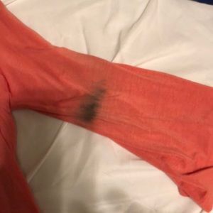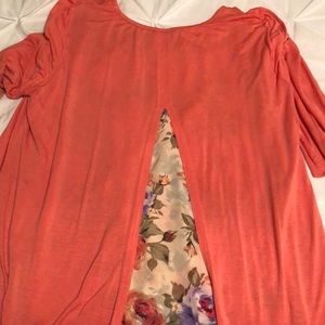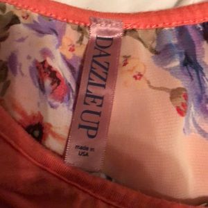Beautiful top with floral print underneath. Small stain left arm. Dazzle up brand. Smoke free home.