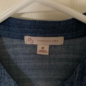 This top is made of 95% polyester and 5% spandex! Made to look like denim, navy blue!