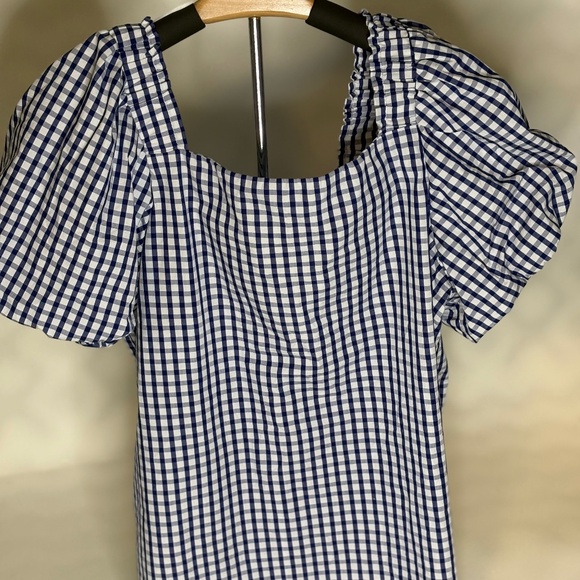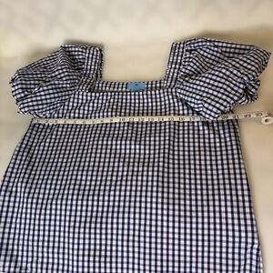 Womens top CeCe Brand with puff sleeves. Navy and White Check 100% Cotton.