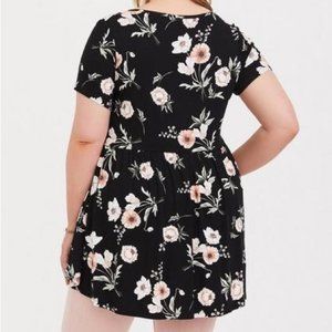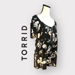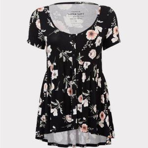 Women’s torrid 00 Black Floral Babydoll Super Soft Button-Front Top M L 10 12