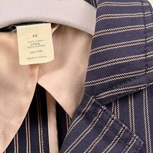 This is a beautiful all cotton jacket with great tailoring and all sorts of nice details and stitching. Please see pictures for those details and size guidance.