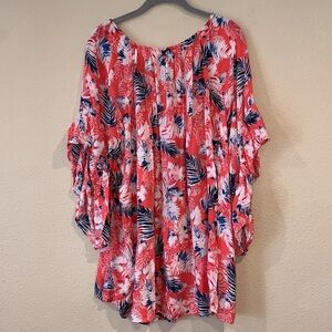 This is a Women’s tropical floral popover blouse with sleeve detail plus size 1X in gently used condition