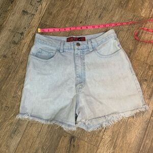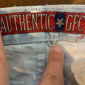 Women’s vintage Authentic GFC high-waisted light blue wash denim shorts with frayed hem, size 9 see measurements, preloved good condition