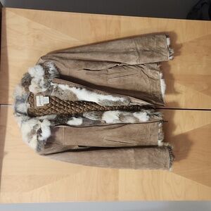 Women's vintage Tan St. John's Bay leather and rabbit fur coat size small
