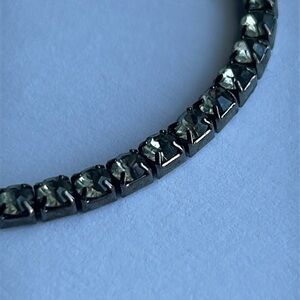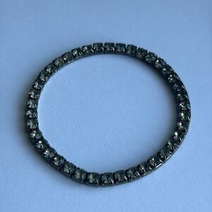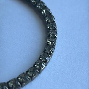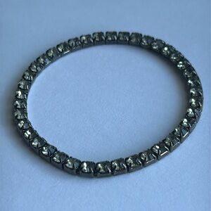 Gently used great condition Women’s vintage dainty silver tone green gemstone bracelet one size stretches measurement shown