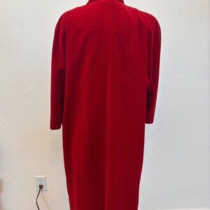 Womens vintage red velvet coat SZ L - long open coat with ¾ sleeves Fully lined