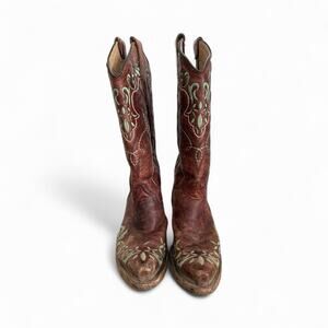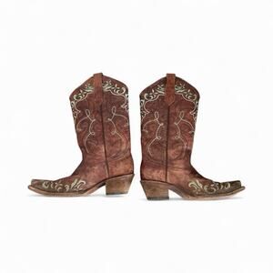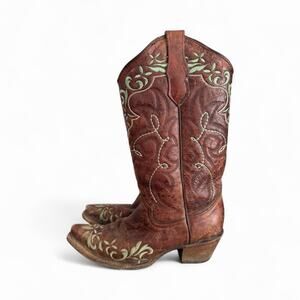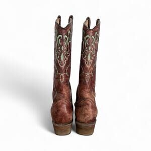 Women's western Cowboy boots vintage brown Leather Circle G Embroidered Stitch 8