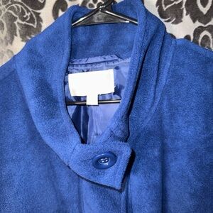 Stay warm and stylish with this elegant royal blue coat. Perfect for any occasion. For a dressed up look or for everyday just to look fabulous. Button down with pockets. In mint condition see photos for measurements.