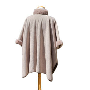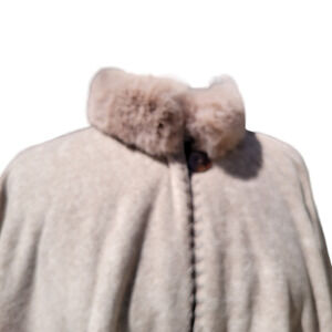 Women's wool grey poncho cape with faux fur trim neck and sleeves One size new