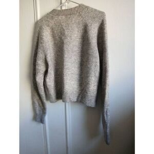 Womens xl mohair wool cropped gray sweater cardigan silver embellished buttons