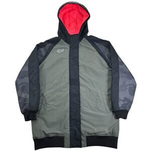 Women's y2k Fox Racing Winter Parka Jacket Large Hooded Button Up Fill Zip Coat