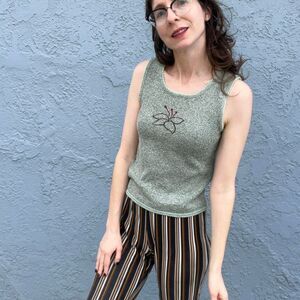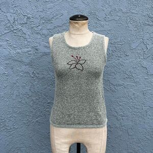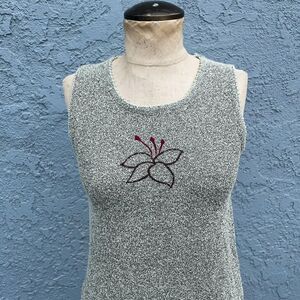 Vintage grey and mint green and pink floral embroidery tank top. Cute Hawaiian hibiscus flower. Very y2k.
