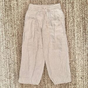Women's 100% Pure Linen Loose Fit Summer Pants Khaki Brown Small