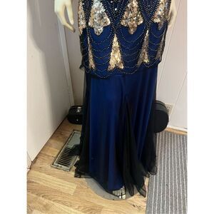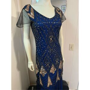 Womens 1920's S/M Retro Sequin Dress Cobalt Blue Silver Fishtail Bottom Stretch